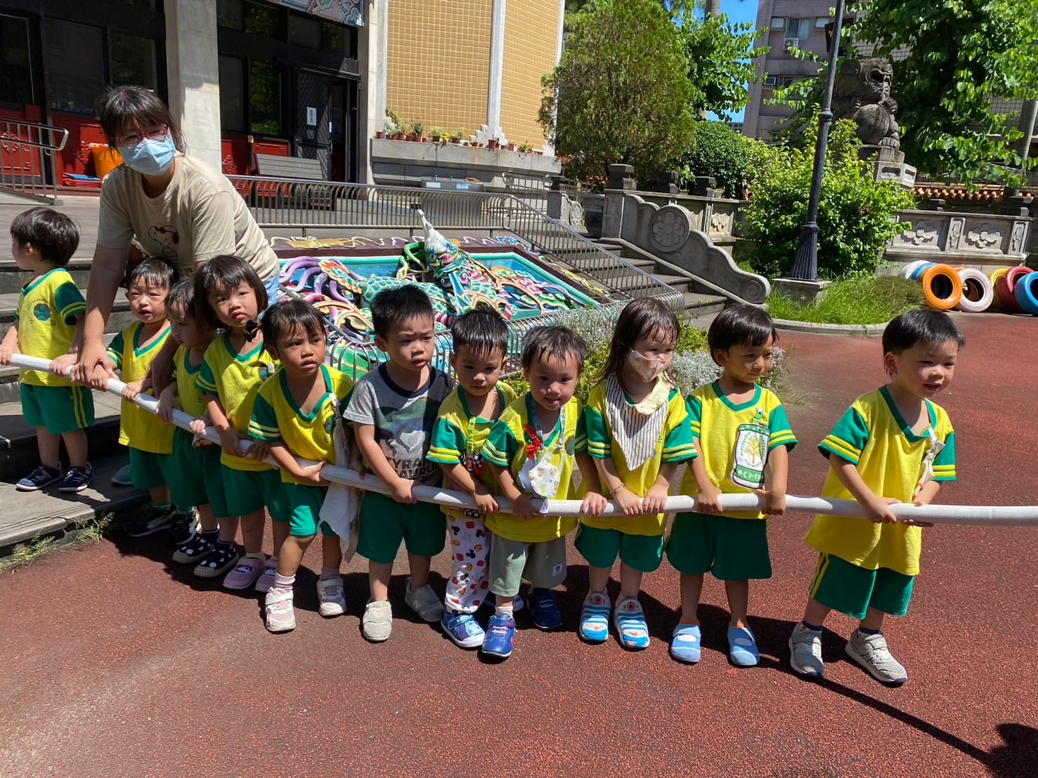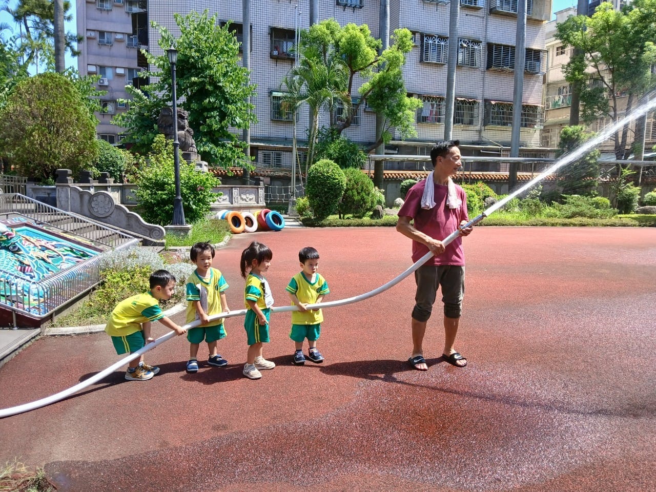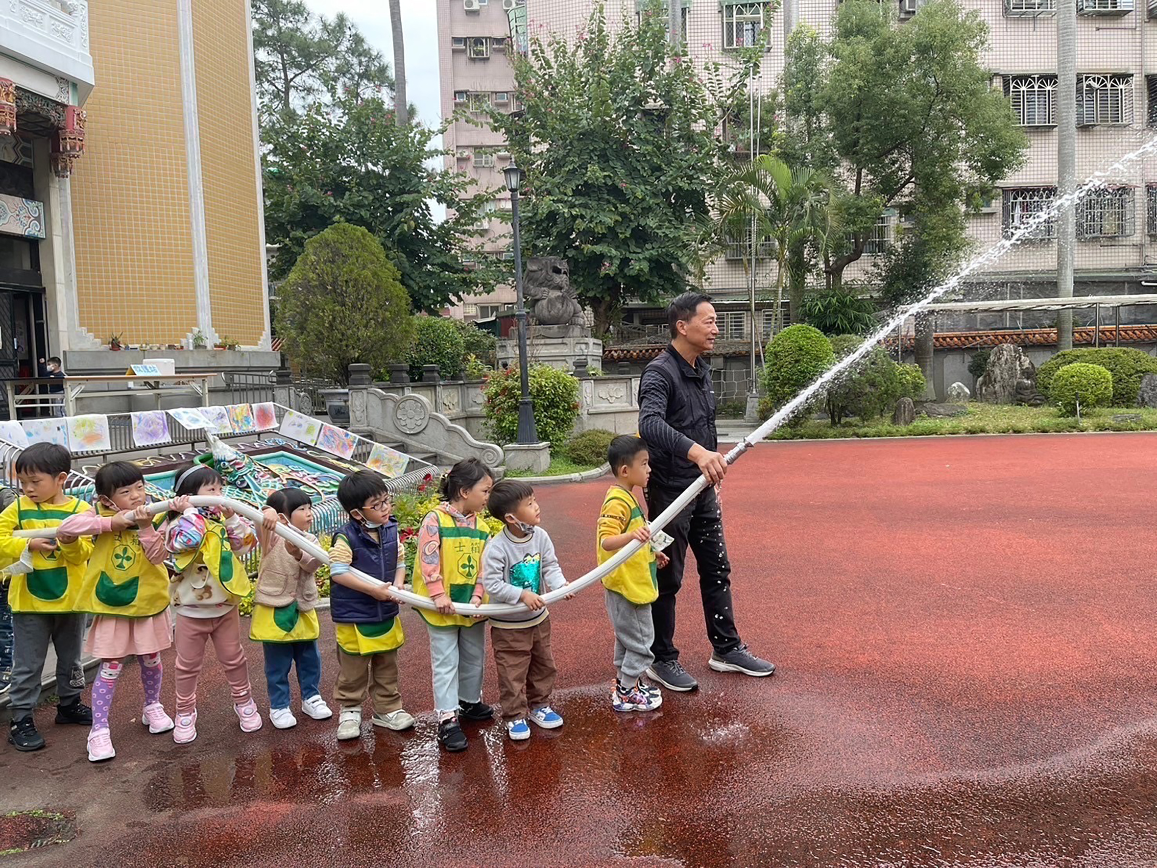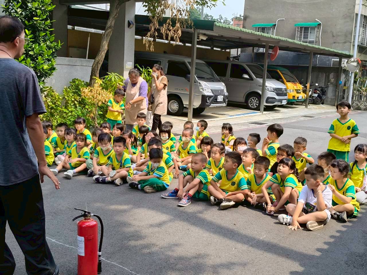 幼兒園消防安全演練透過模擬火災情境,教導幼兒「不推、不跑、不語」的逃生原則,並由老師帶領幼兒疏散至空曠的安全地點,加強幼兒的安全意識與自救能力,同時也讓老師熟悉滅火與通報等滅火措施。