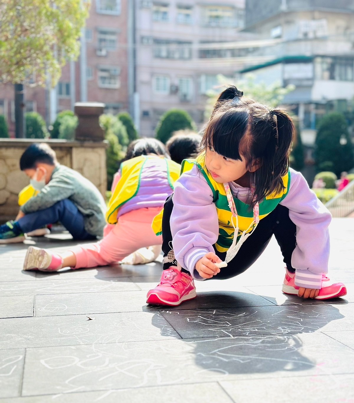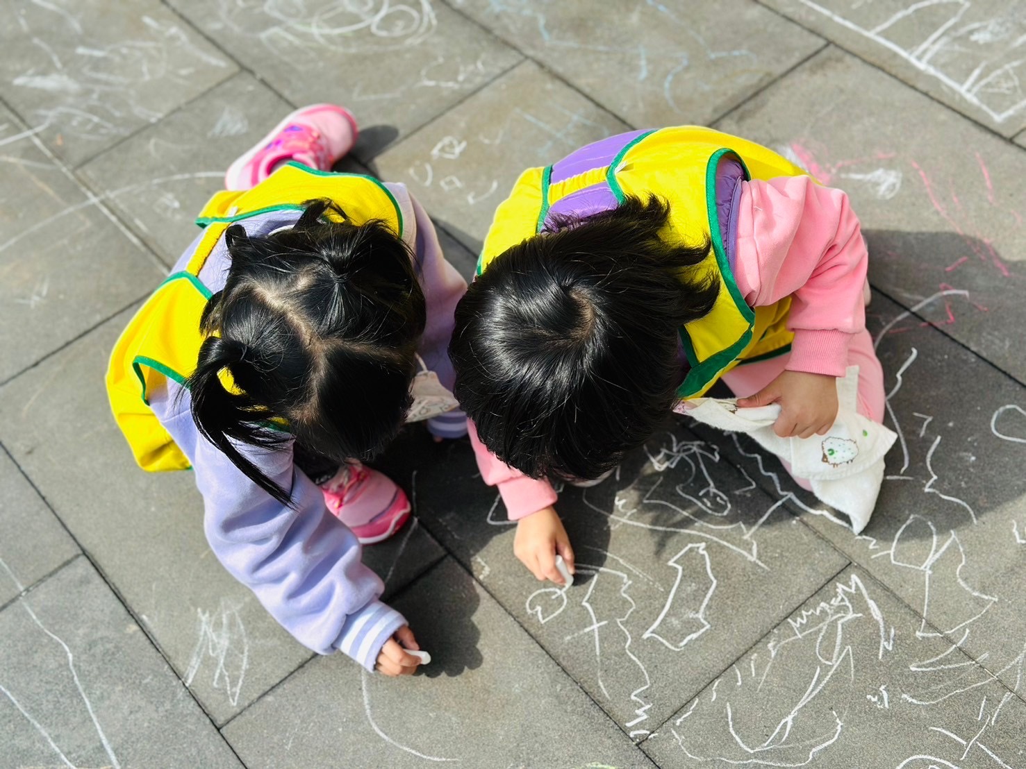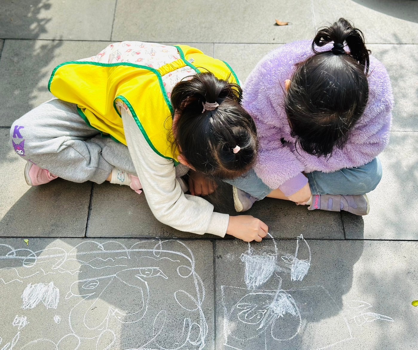 冬日的暖陽下,幼幼寶貝運用粉筆各自發揮其想像力,