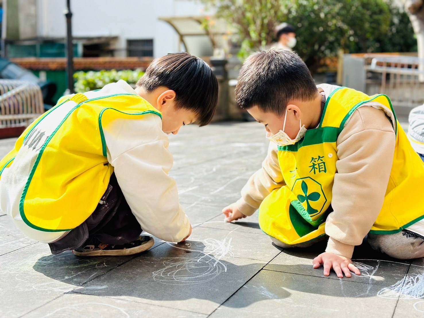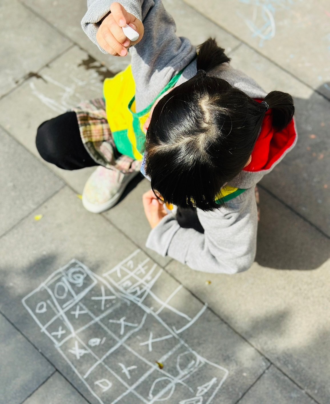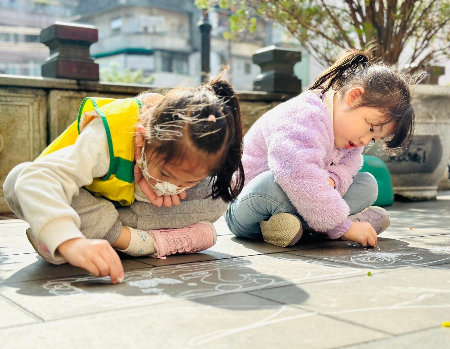 冬日的暖陽下,幼幼寶貝運用粉筆各自發揮其想像力,