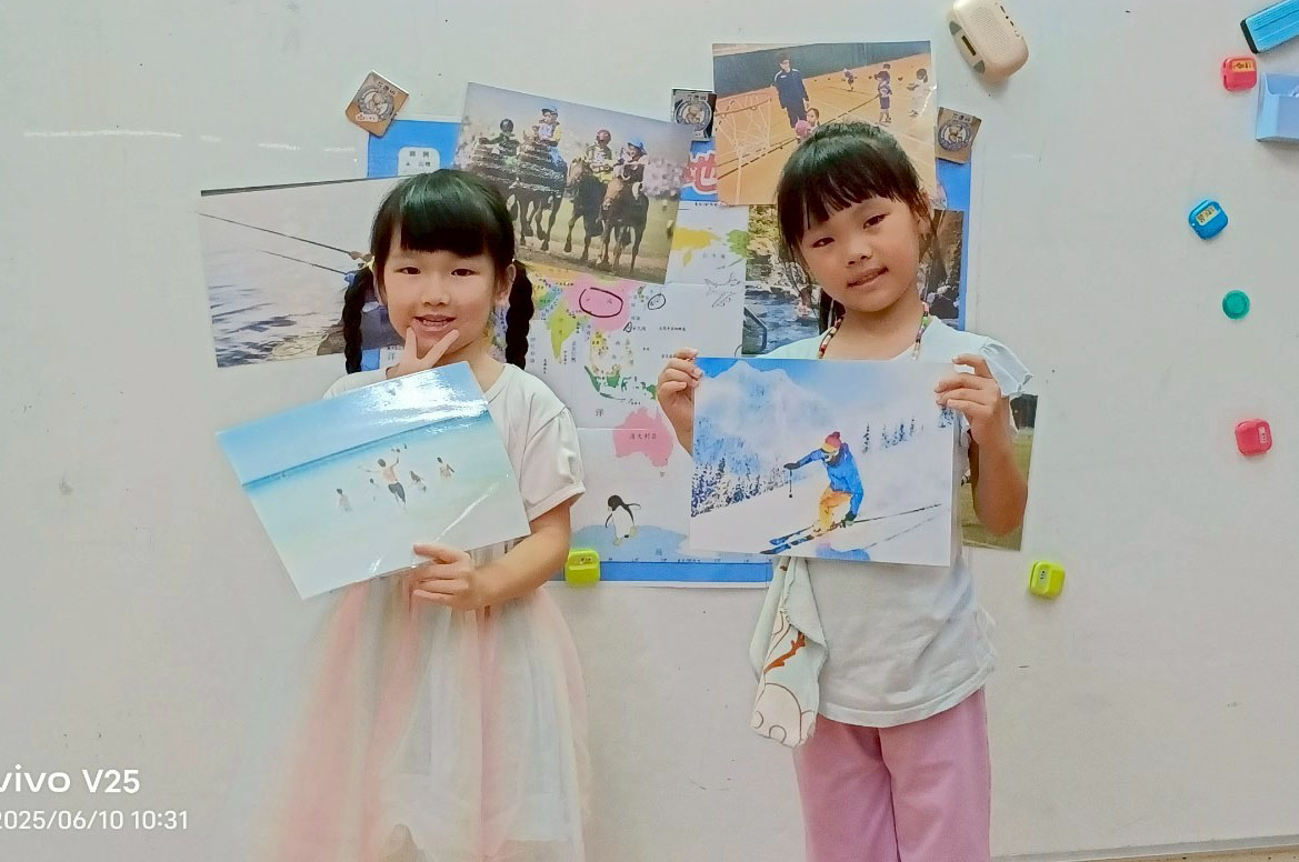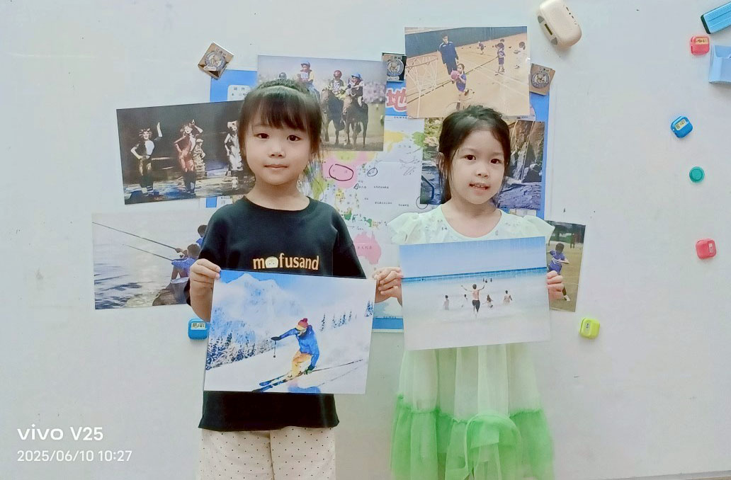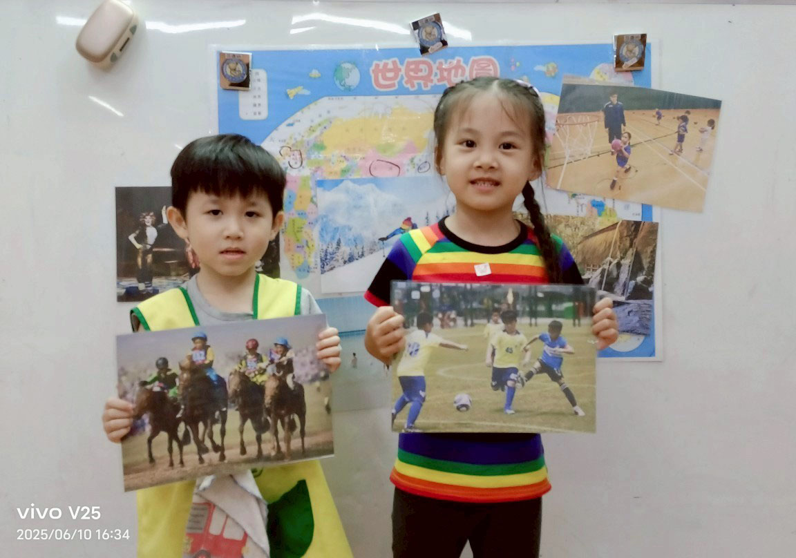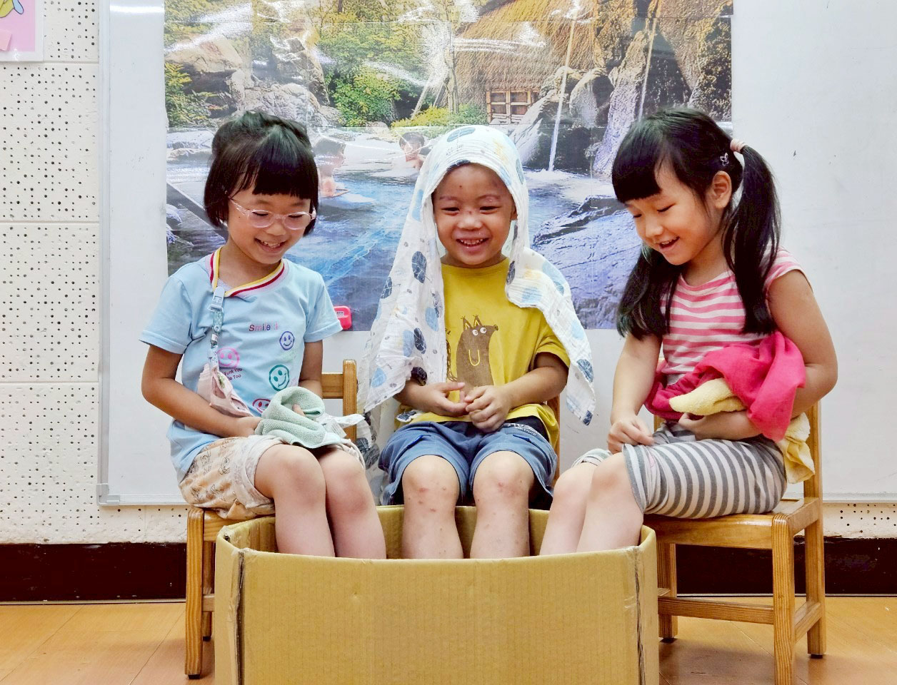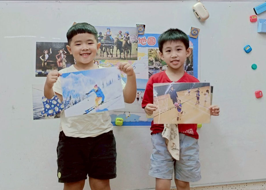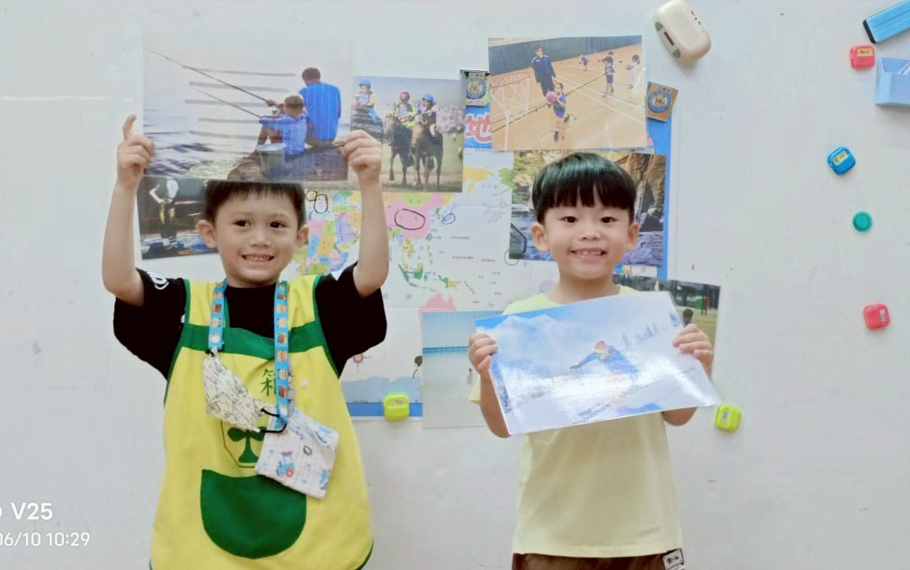 班上小朋友從台灣地圖認識到世界地圖,認識了很多的國家,並藉此分享每個國家因為先天的地理環境、加上文化傳統不同,也會影響到該國家的休閒活動。小朋友認識了很多國家的休閒活動,並體驗日本的泡溫泉、蒙古的騎馬……,爸爸媽媽也可以利用假日帶孩子一起體驗不同的休閒活動唷!
