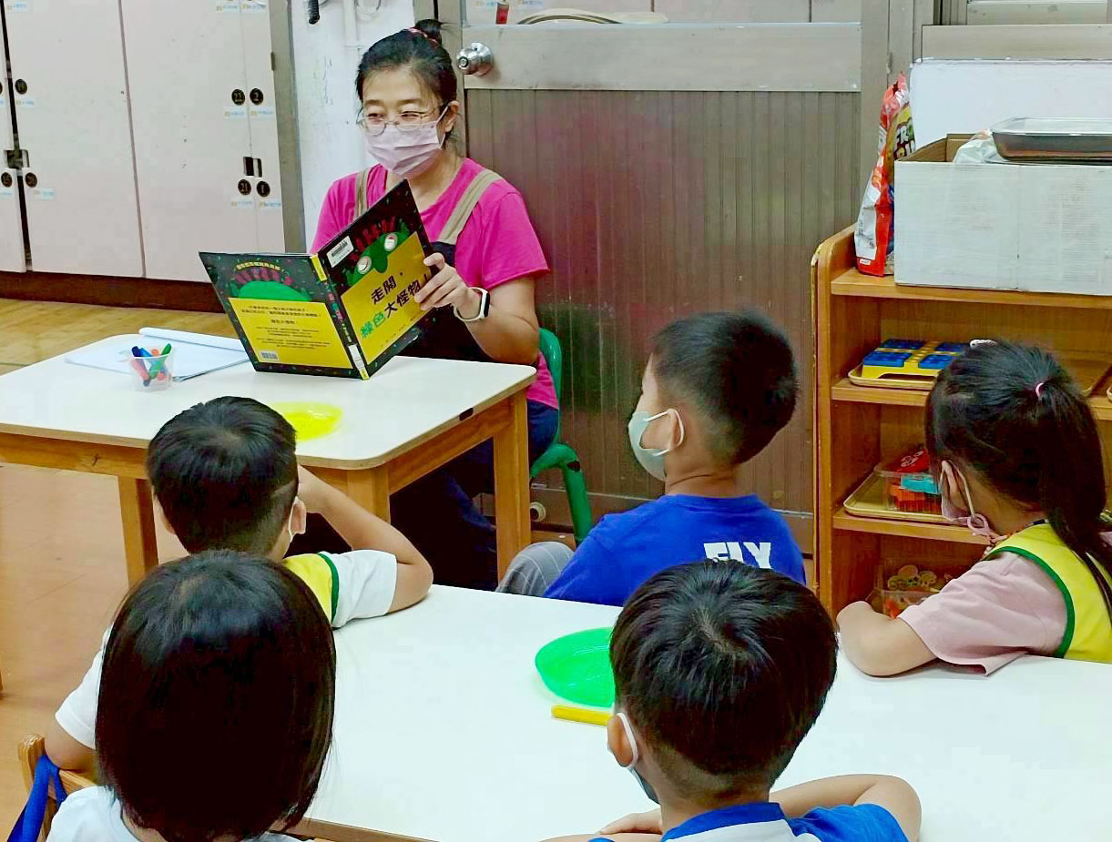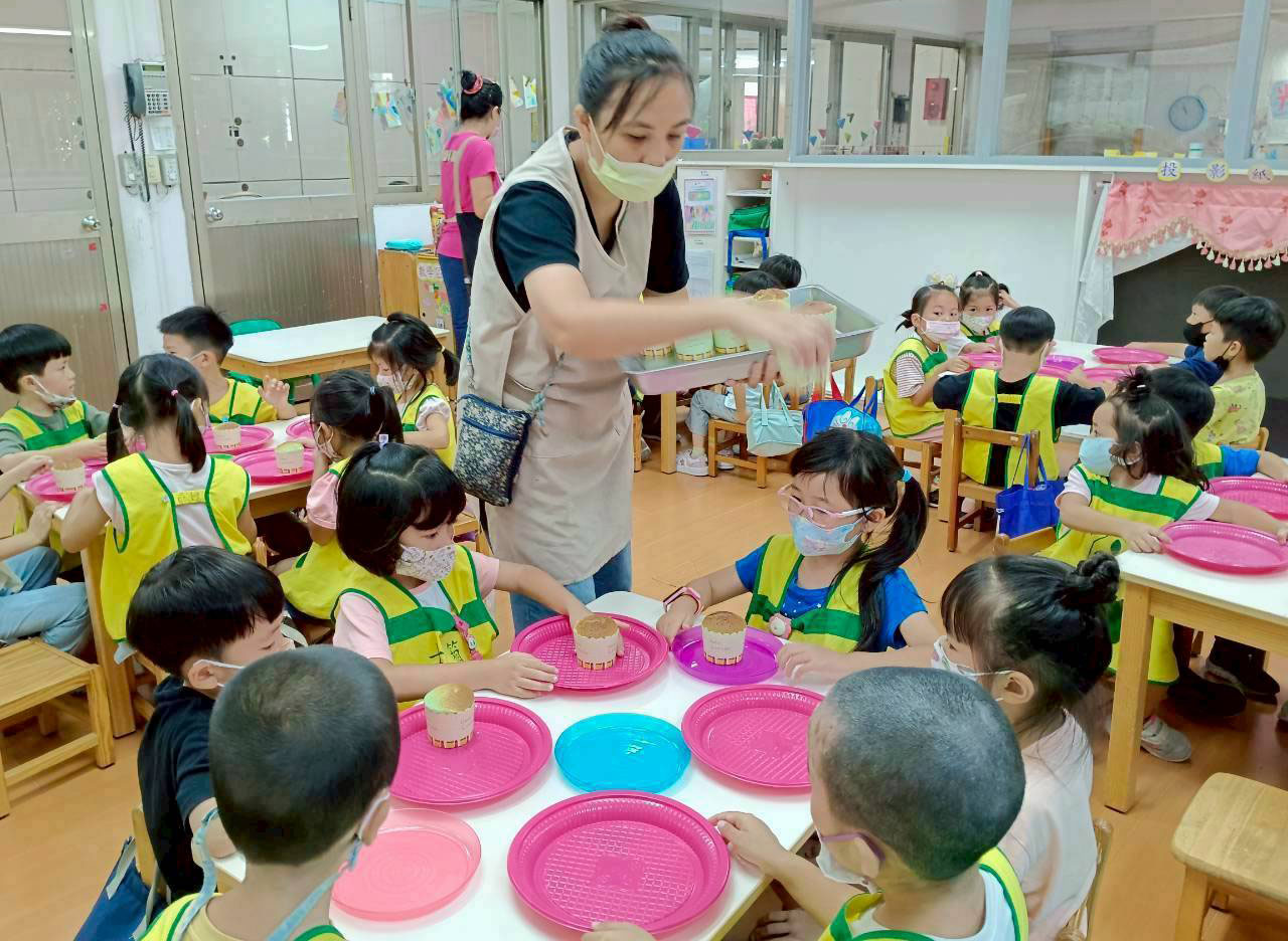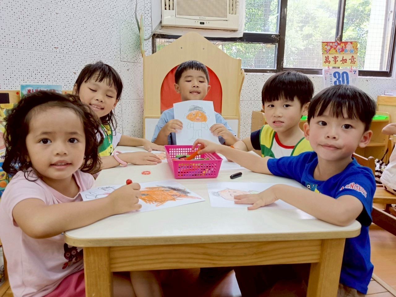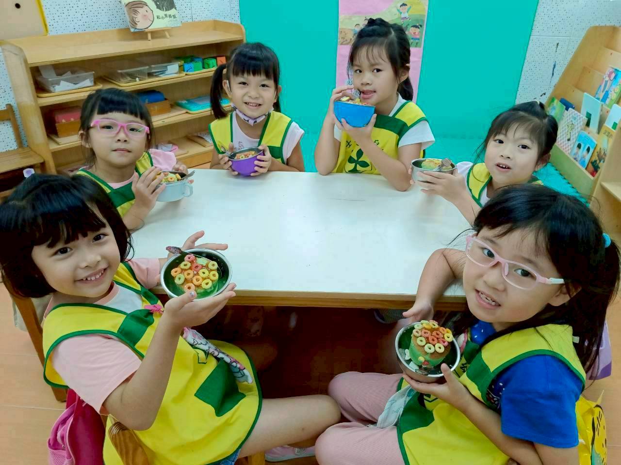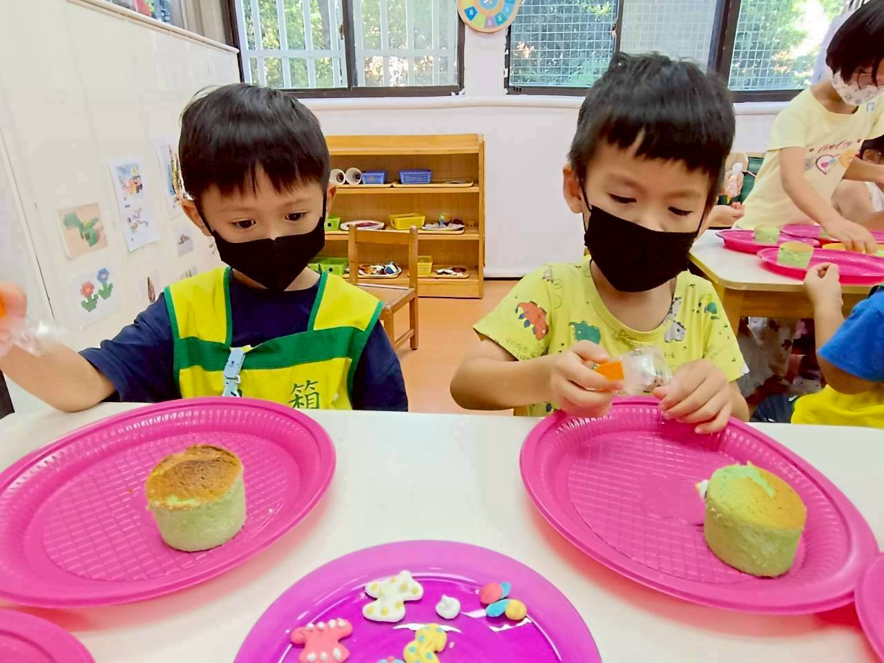 如婷老師帶著葡萄班的小朋友一起上烘焙課,結合繪本《Go Away, Big Green Monster!》,讓孩子們動手做出屬於自己的「小怪獸瑪芬」!孩子們用五彩繽紛的材料裝飾瑪芬,創造出黃眼睛、藍鼻子、綠臉的小怪獸,邊做邊回想故事內容,開心地說著:「Go away, Monster!」