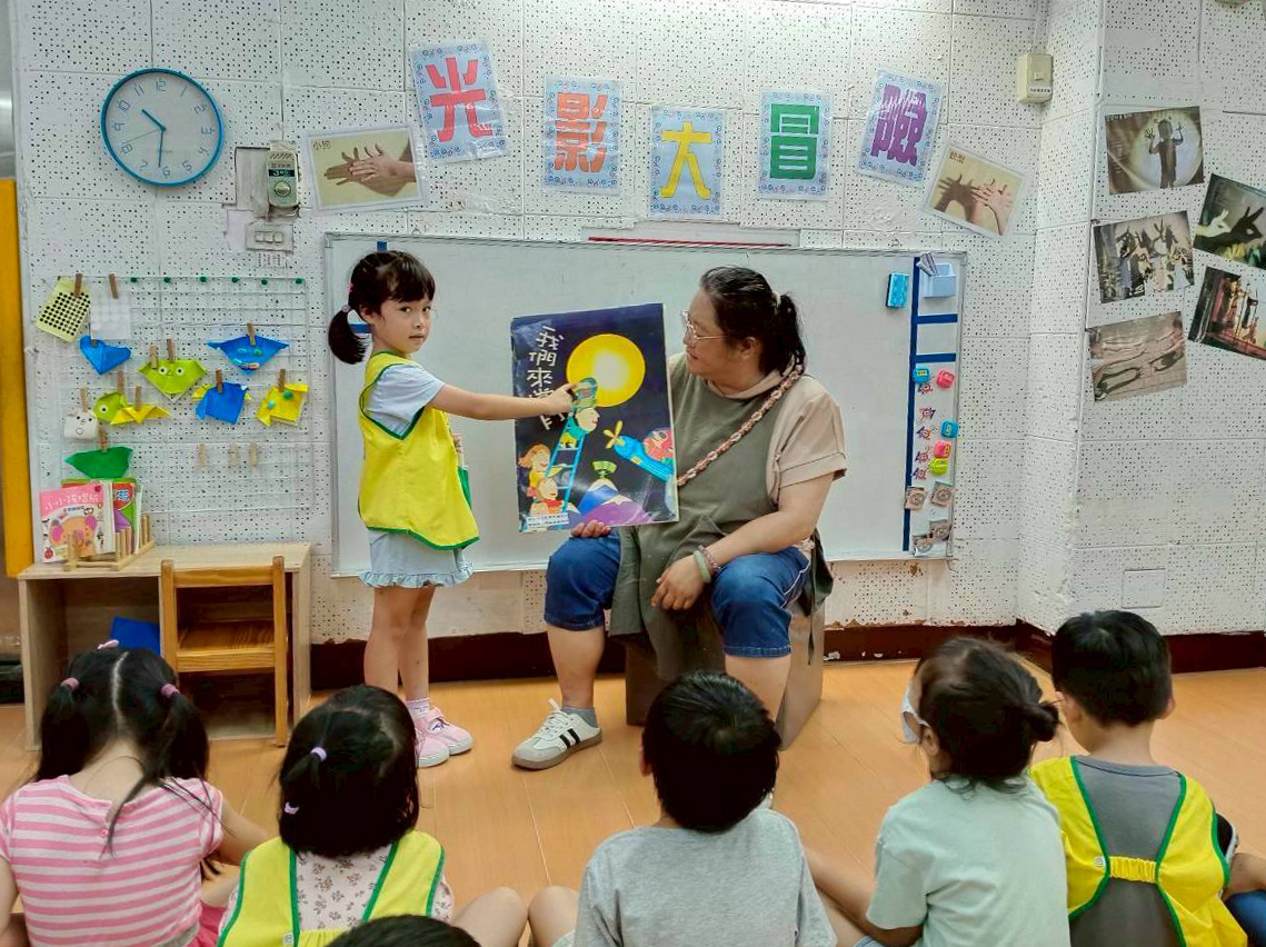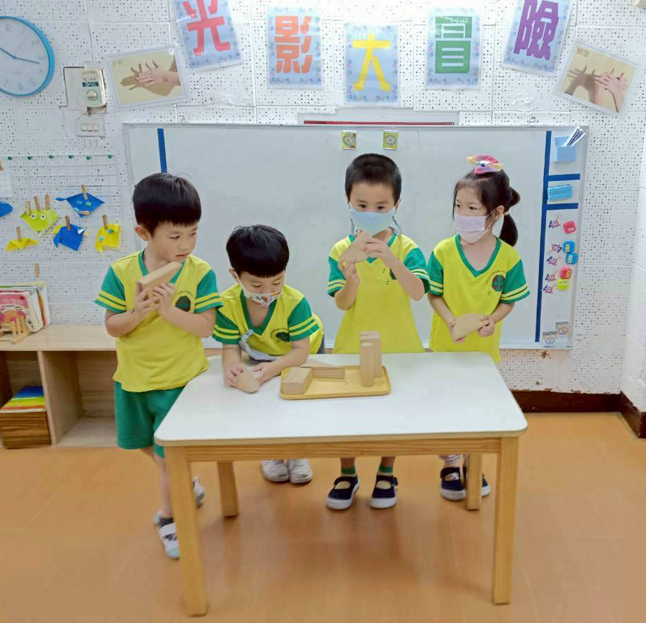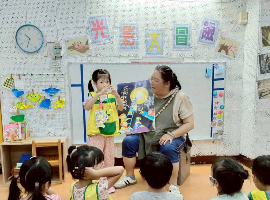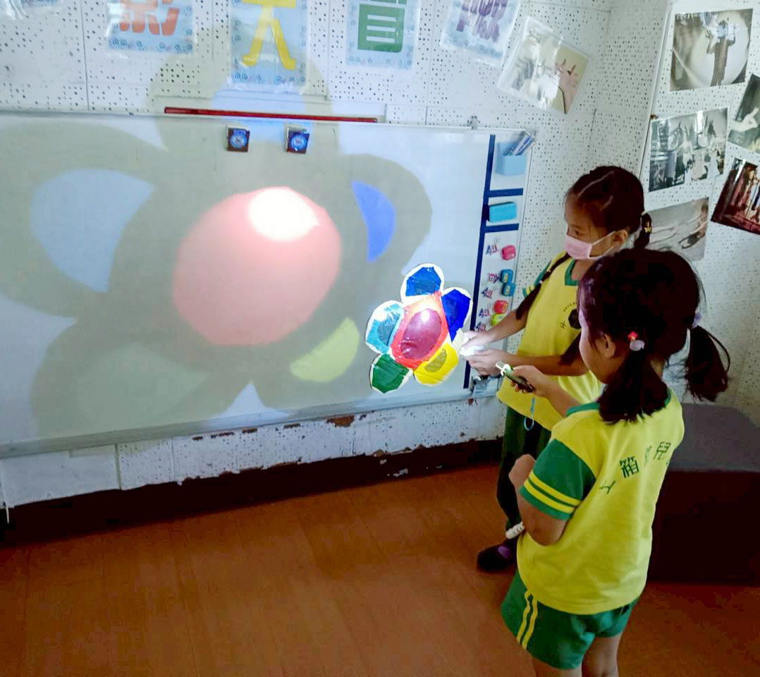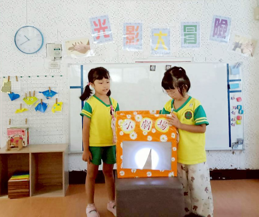 葡萄班-「影子愛變形」操作實驗,引導幼兒觀察影子和光源的位置關係。