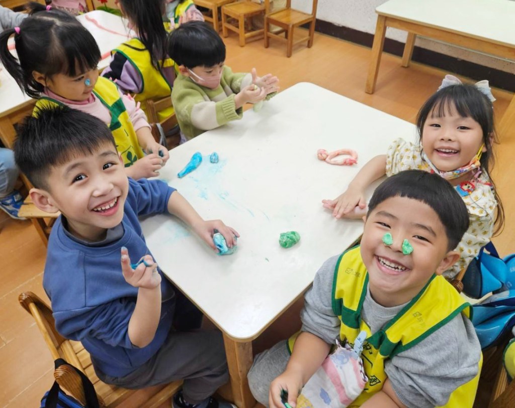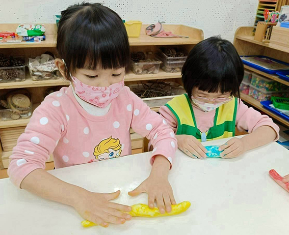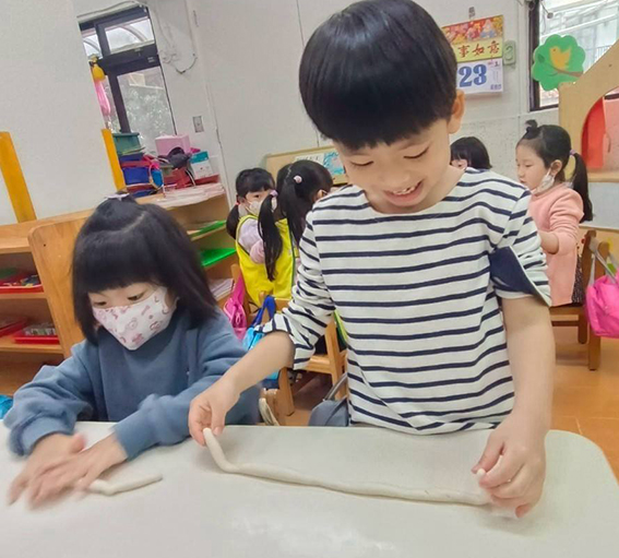 『黏土』是孩子最喜歡玩的遊戲之一,課程中帶孩子們運用麵糰來製作黏土,並加入食用色素讓黏土有更多的色彩,同時將自己製作好的黏土來練習搓、揉、壓、捏等技巧,最後發揮創意創作作品,還有開心的和大家介紹自己的作品。並且在學習區裡自由的探索,有室內學習區、還有戶外學習區,每個學習區都有很多的秘密可以去尋找。最後一定要有大肌肉運動,有健康的身體,才能快樂的學習唷!