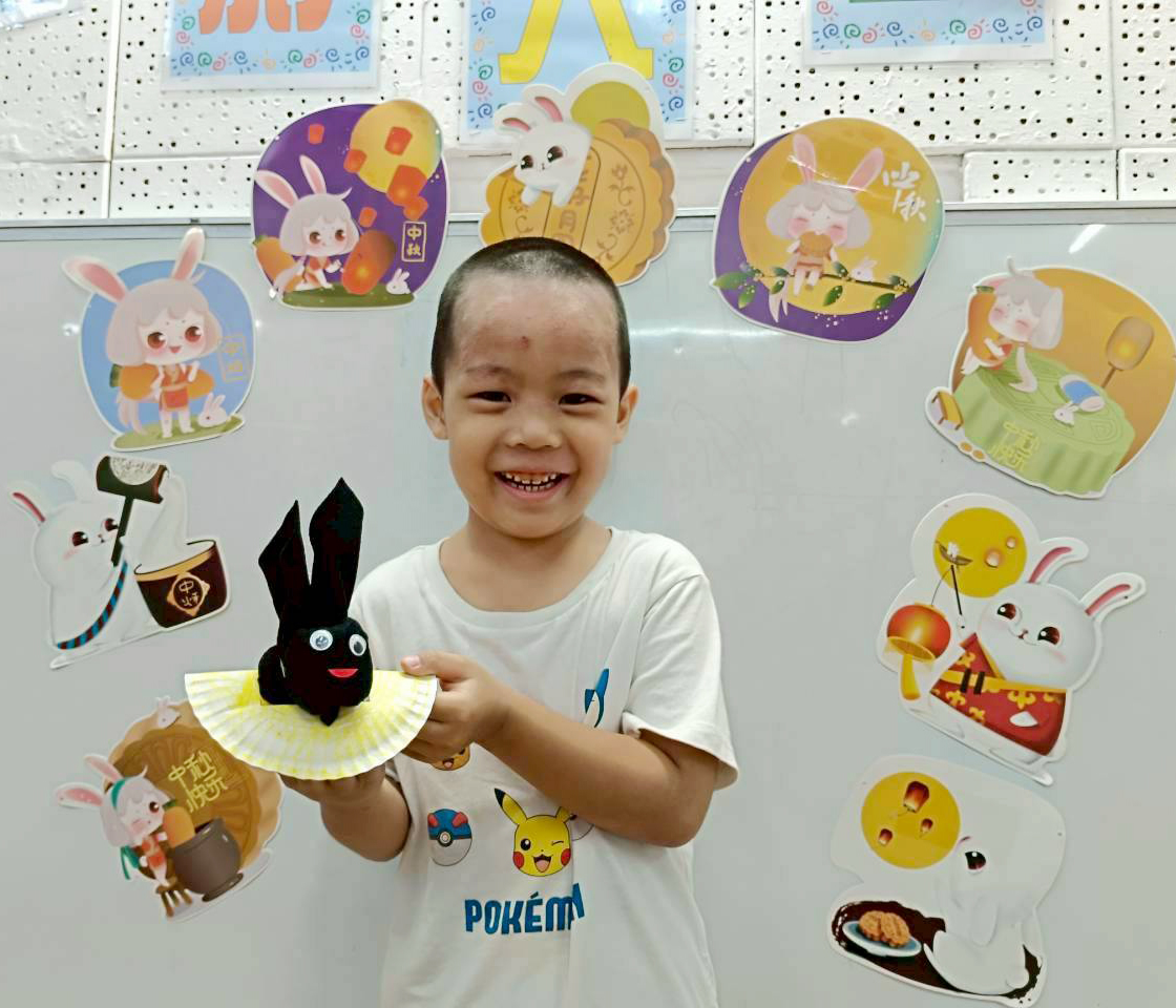 葡萄班的小朋友們在中秋茶會與慶中秋活動中,度過了充滿笑聲與歡樂的一天。孩子們先聆聽了生動的中秋故事,認識嫦娥、玉兔和月亮的傳說;再動手完成「可愛玉兔」勞作,每一隻作品都展現了獨特的創意。活動中,孩子們還帶著「柚子寶寶」進行趣味運動,玩得開心極了!茶會時,大夥兒一同剝柚子、品嚐月餅,分享喜悅與笑聲,現場洋溢著熱鬧又溫馨的氛圍。