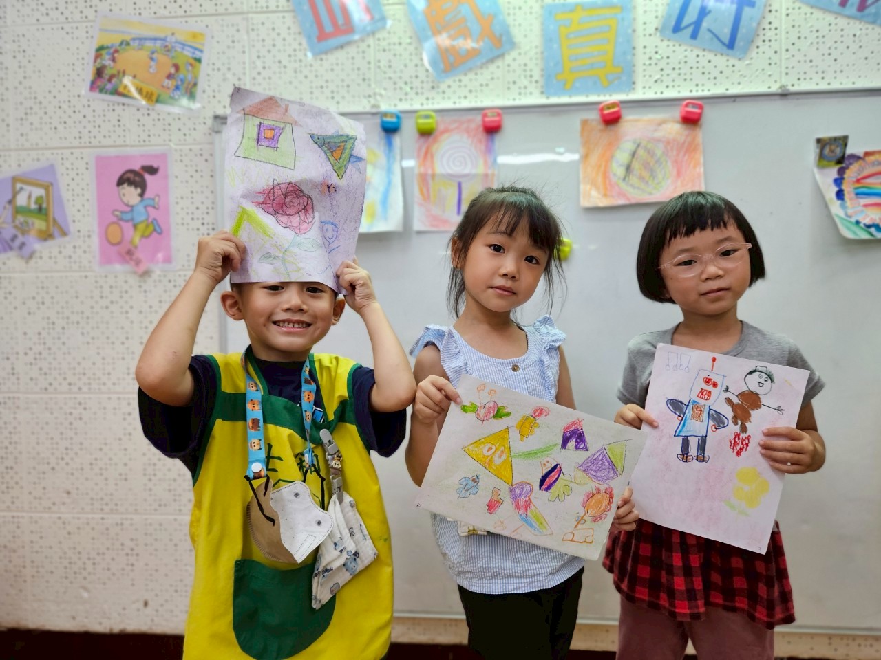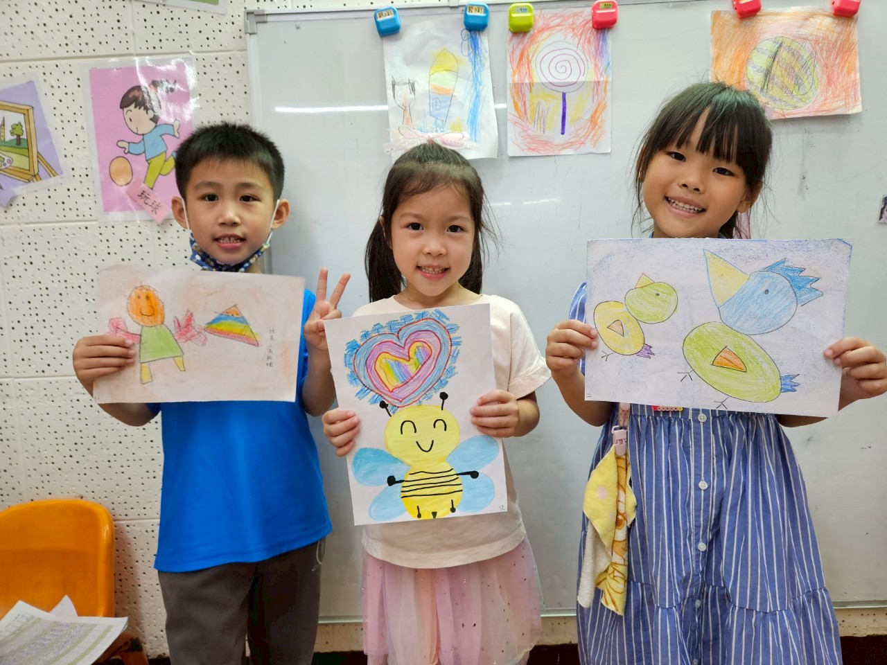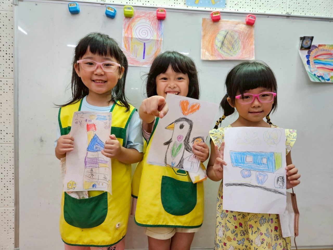 活動最後,我們邀請家長與孩子一起完成「親子合作畫作」──孩子先畫出各種圖案,再由家長延伸接畫,畫中充滿了溫馨和創意。當孩子們拿著作品自信地上台分享,看到家長的畫功驚人,還開心地說:「我媽媽才是真正的畢卡索呢!