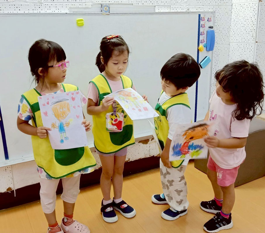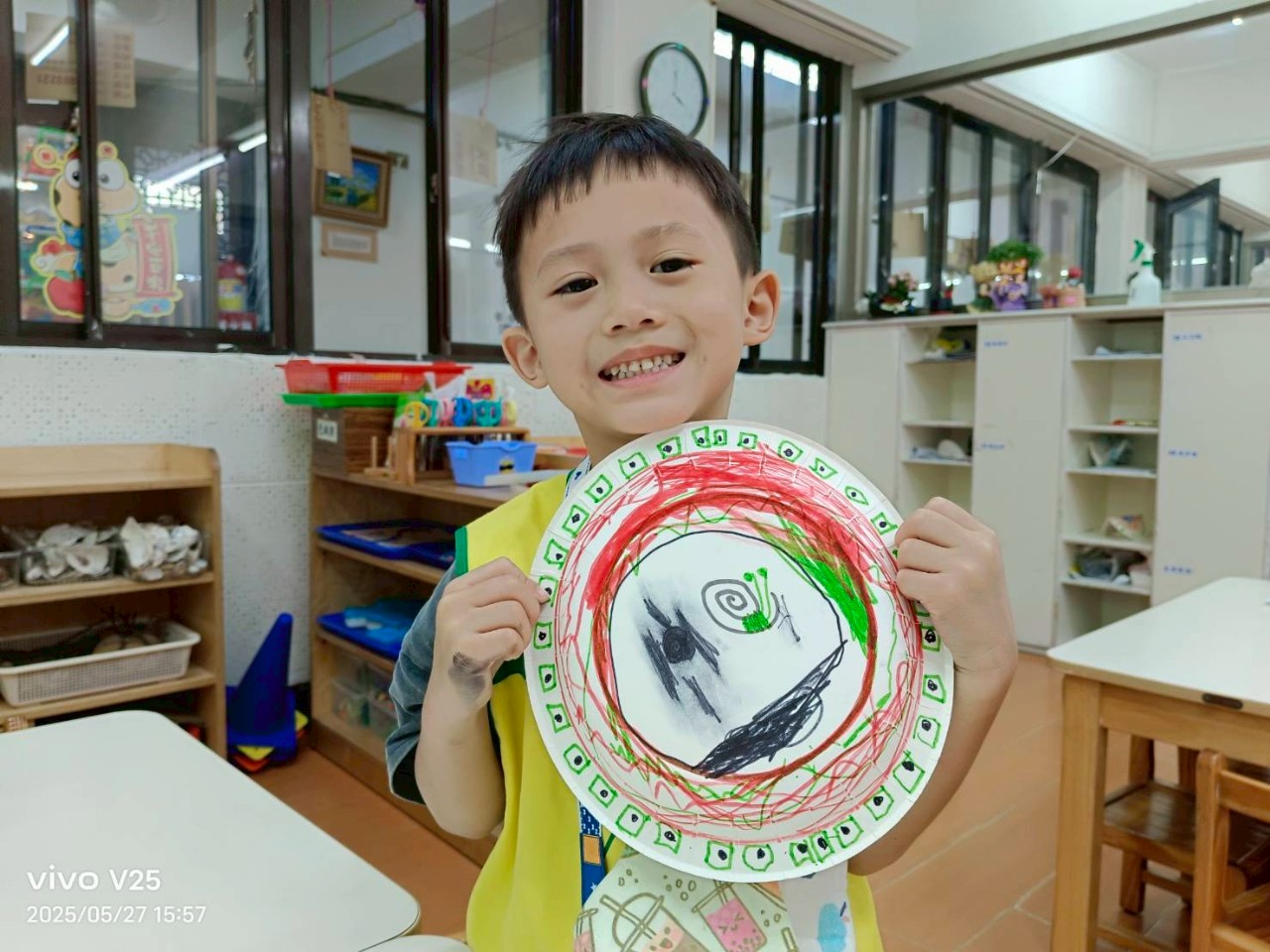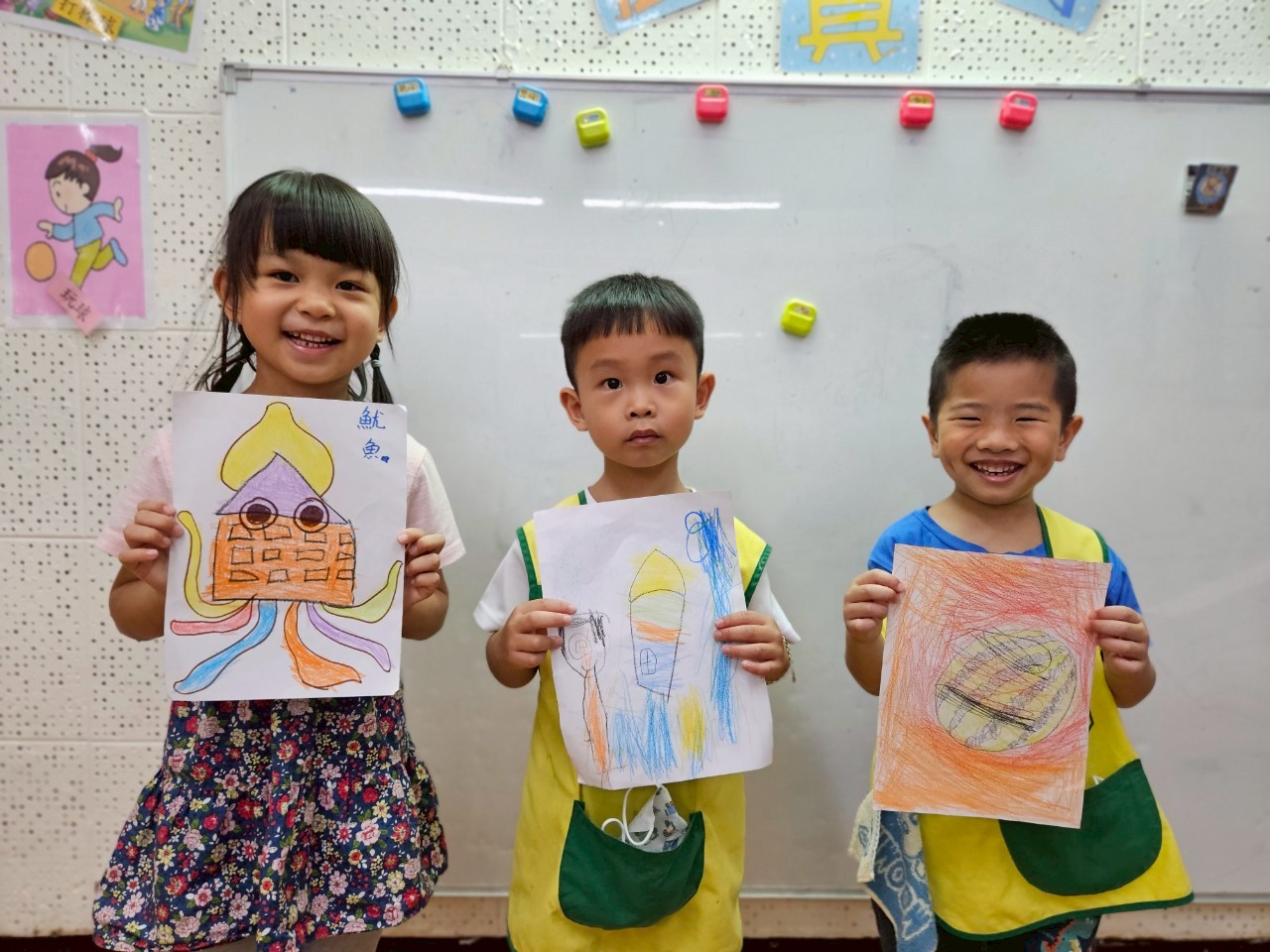 活動最後,我們邀請家長與孩子一起完成「親子合作畫作」──孩子先畫出各種圖案,再由家長延伸接畫,畫中充滿了溫馨和創意。當孩子們拿著作品自信地上台分享,看到家長的畫功驚人,還開心地說:「我媽媽才是真正的畢卡索呢!