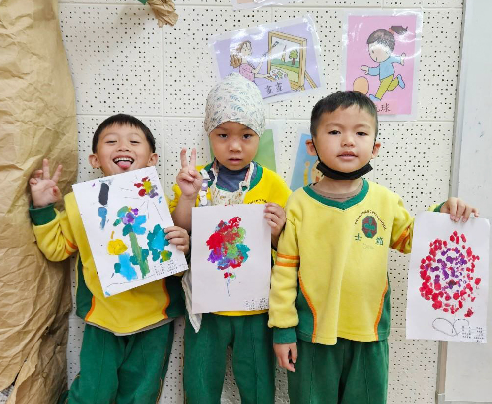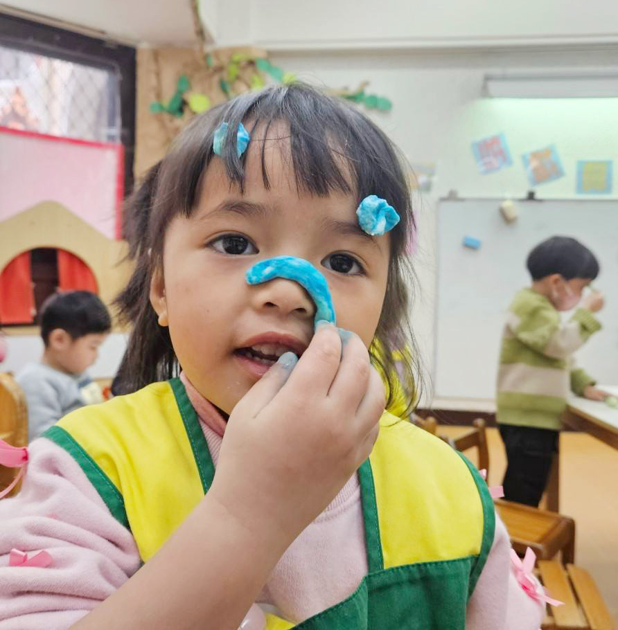 在主題活動中,孩子們一起用指壓畫小花,發揮想像及創造力,創作出於自己的作品,從中看到了孩子們的進步!孩子們都喜歡玩黏土,而花鹿班的孩子不只會玩,還會自己做黏土,挑戰自製遊戲