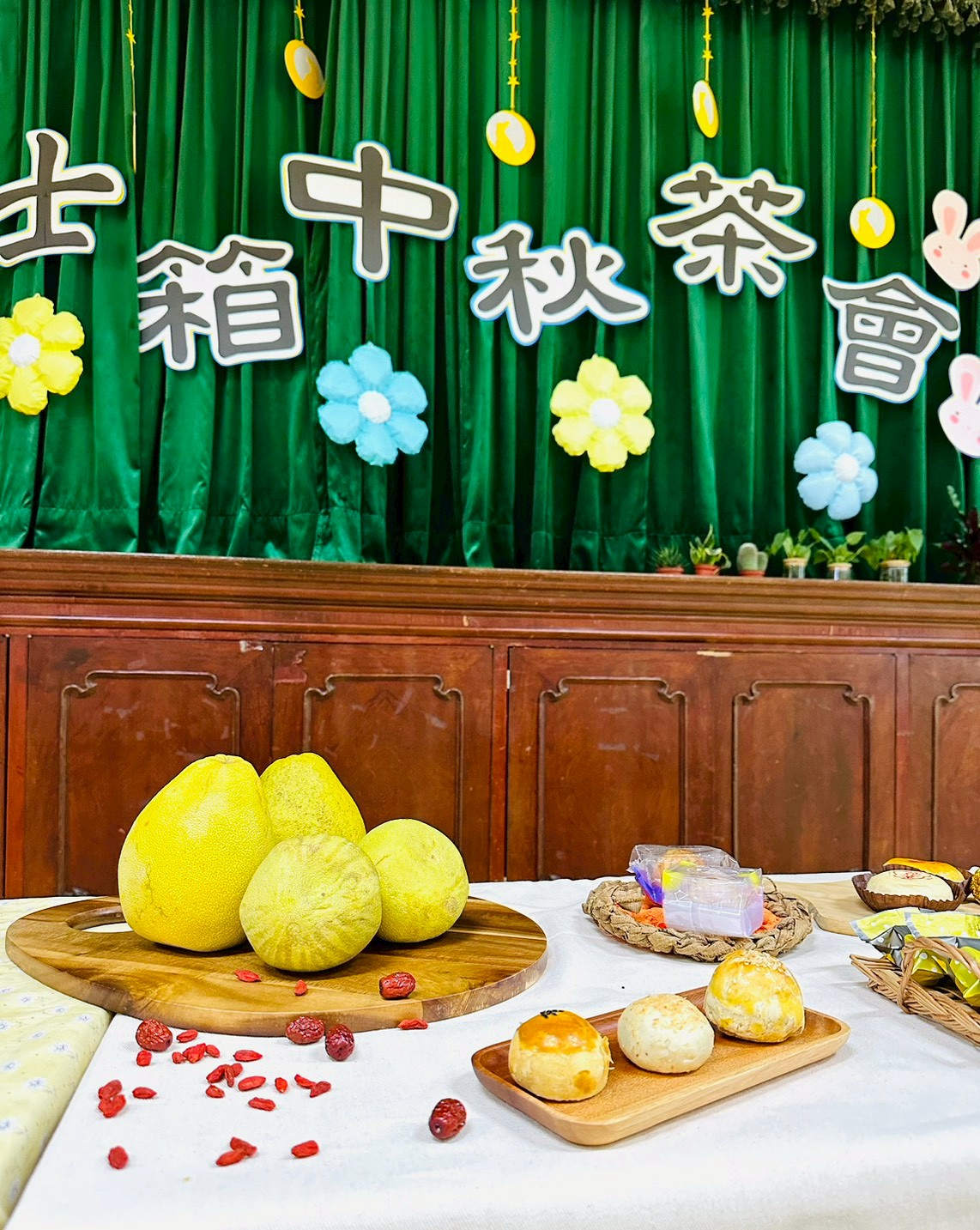 我們為小朋友籌備一場熱鬧有趣好玩的中秋節茶會,有柚子和茶點、月餅等等的陳設,營造團圓、溫馨的節日氛圍,搭配各種不同的遊戲,體驗佳節活動的趣味性。