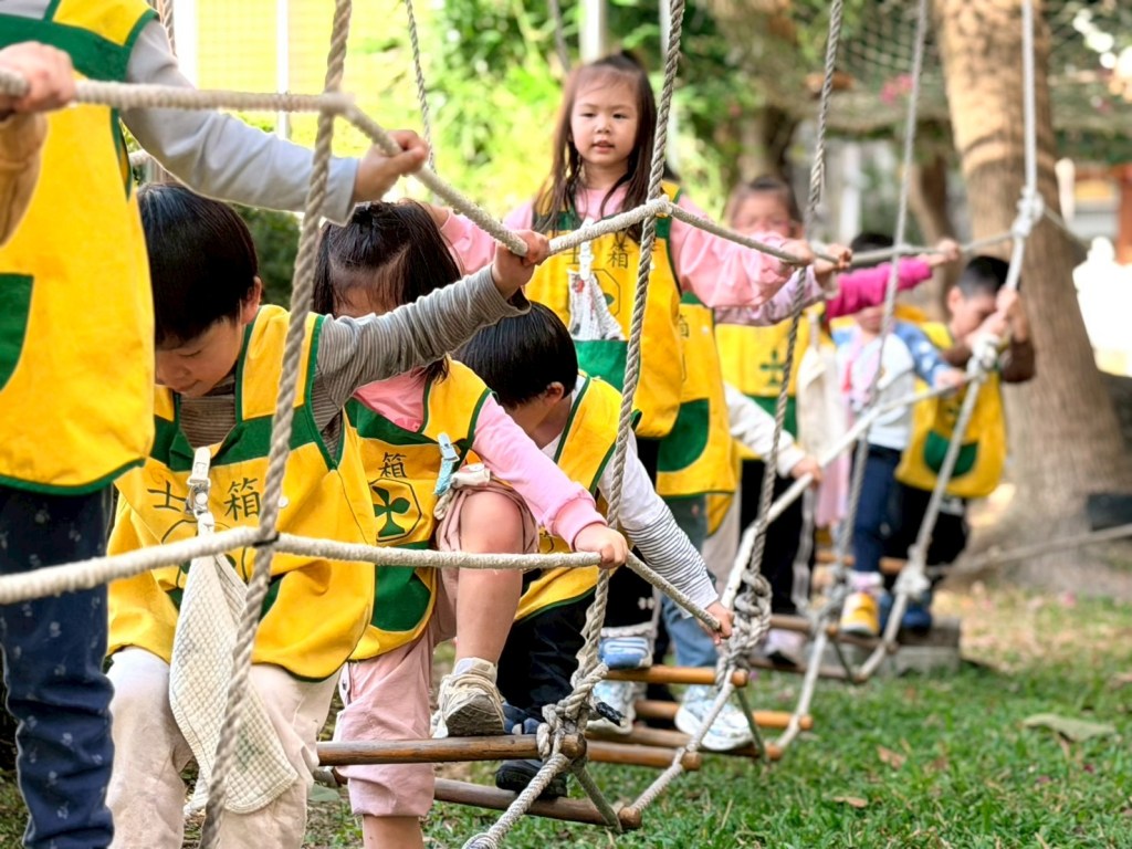 人際互動與社交: 團體挑戰(如走繩或多人攀爬網)鼓勵同儕間的模仿學習、互相鼓勵與合作。
