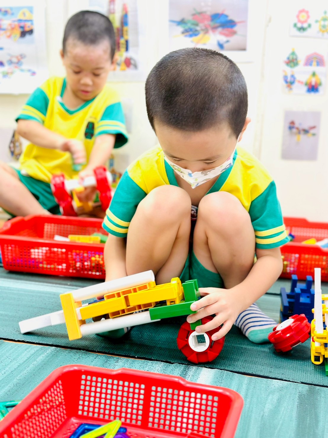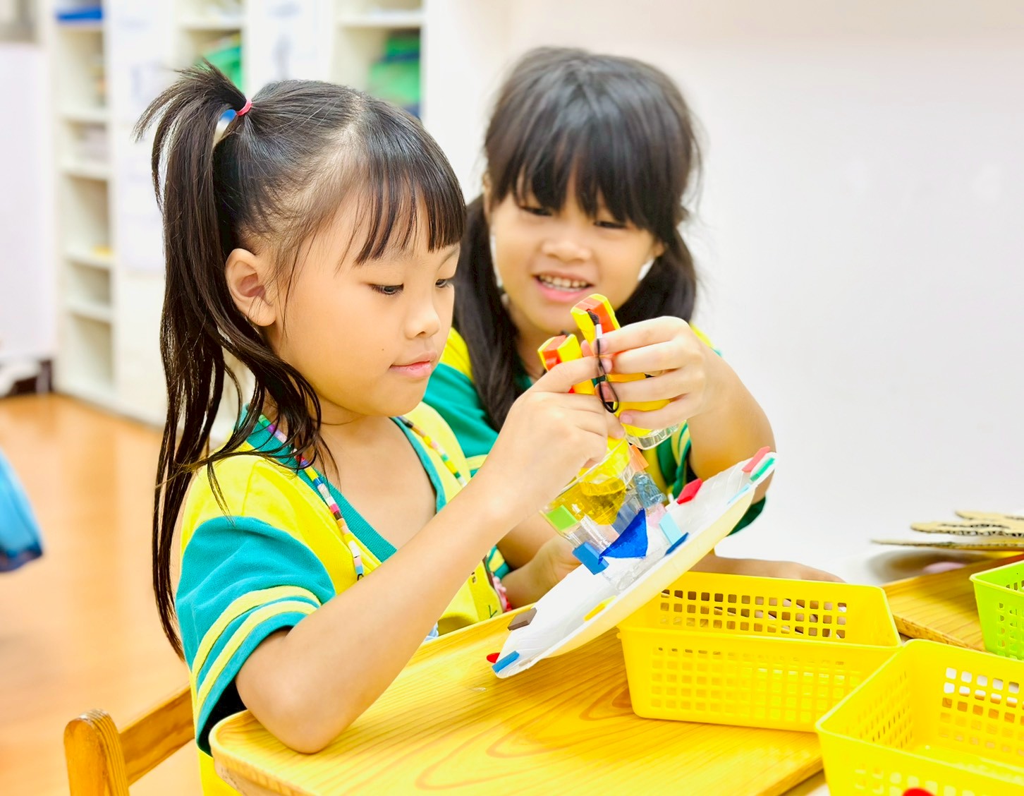 兒童透過組合、堆疊、拼接積木、磁力片等零件,自由創作不同形狀與結構的遊戲過程。此活動能顯著提升幼兒的創造力、空間概念、手眼協調及解決問題的能力。