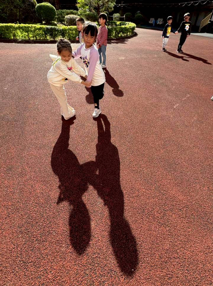 而在追逐影子的遊戲中,孩子們觀察到影子會隨著陽光角度而改變,時而拉長、時而縮短。這些自然中的小發現,引領他們思考光與影的關係,也讓探索變得更富趣味與深度。